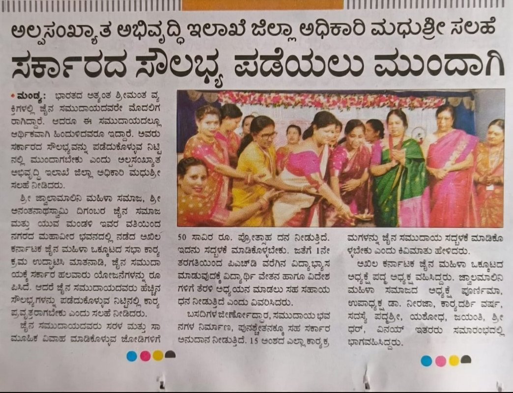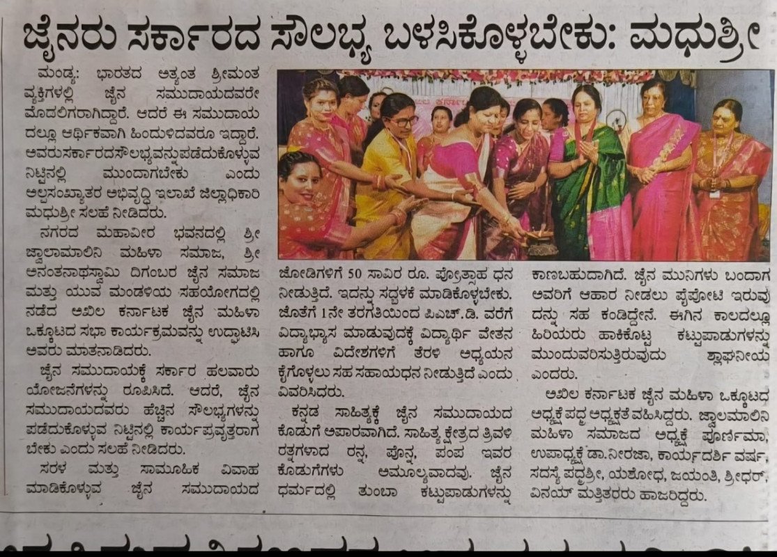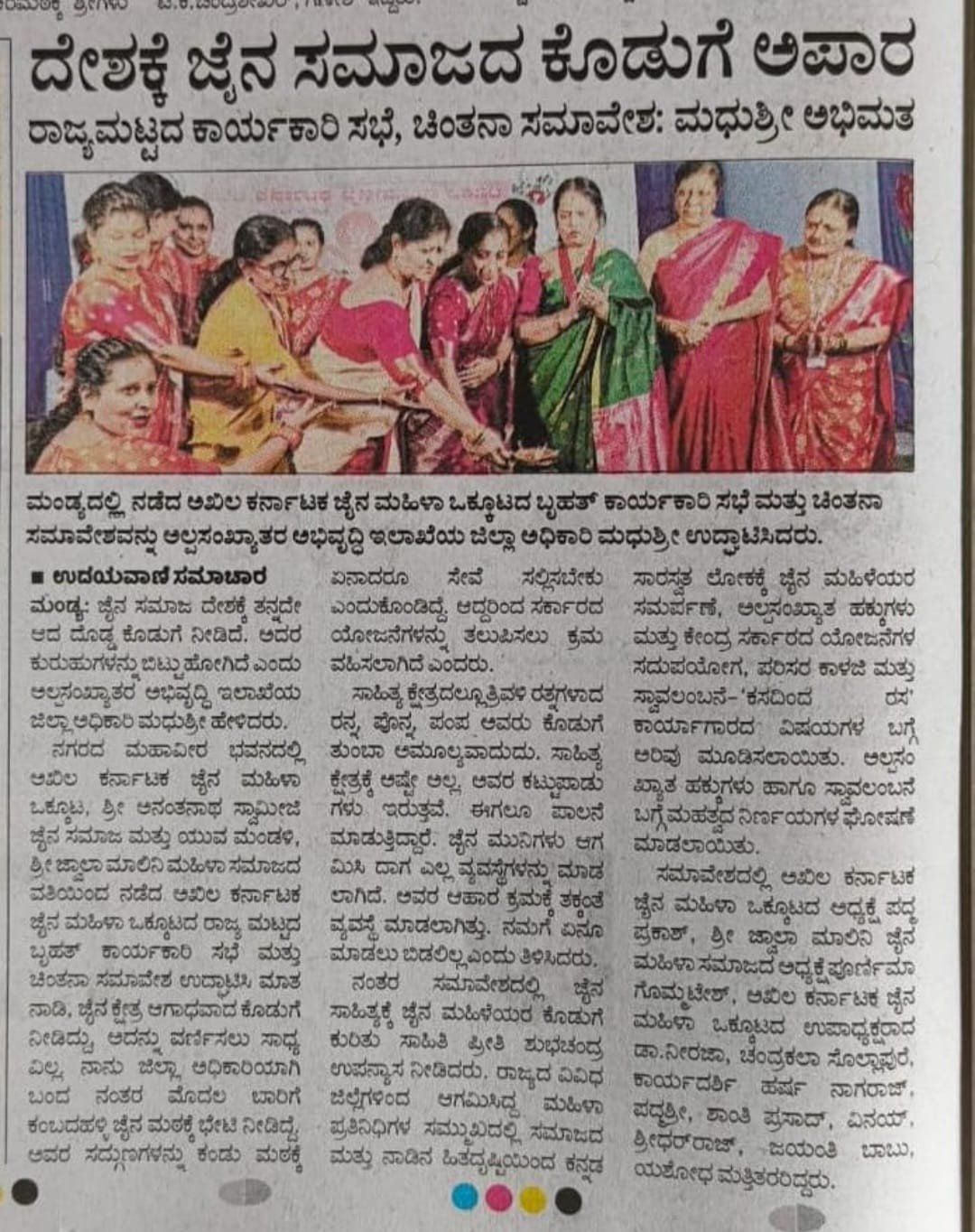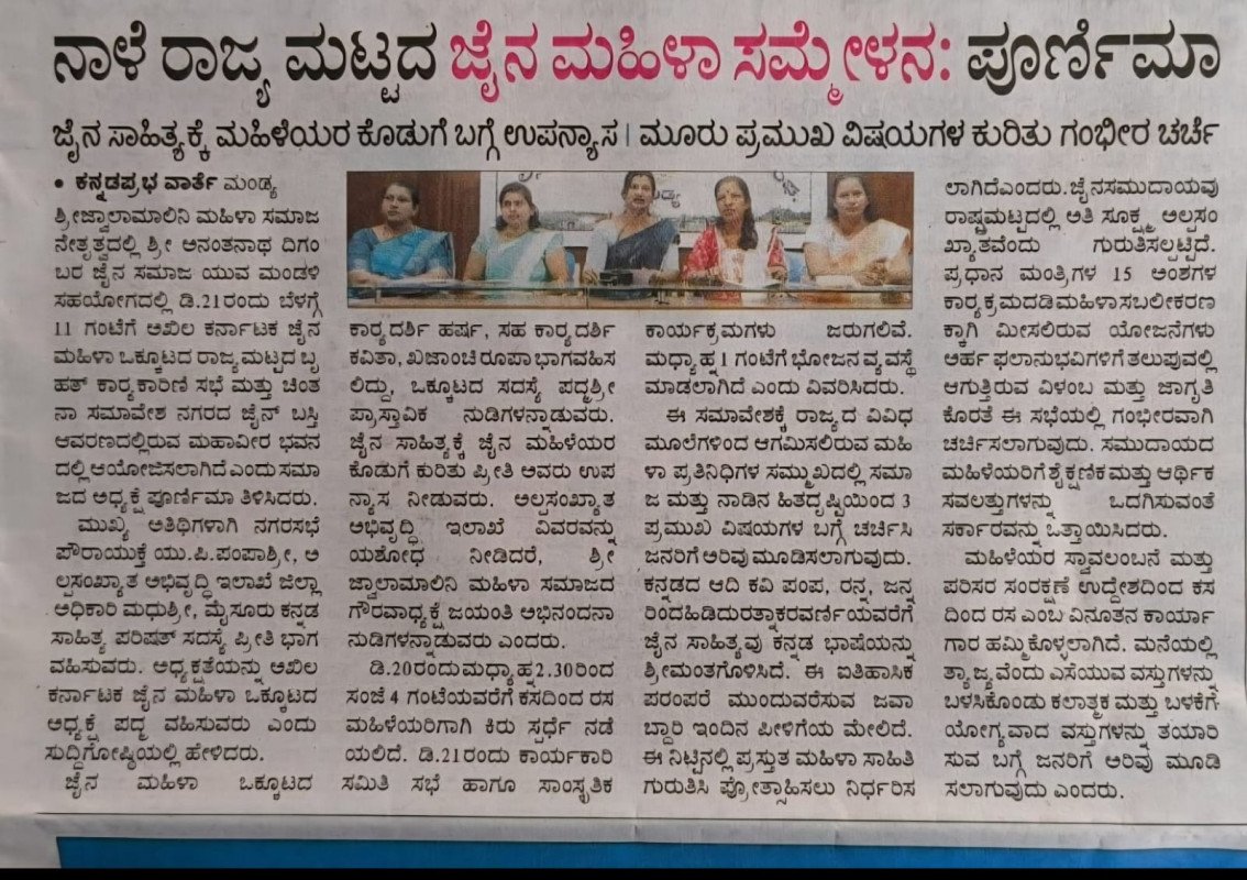 "ಸಕ್ಕರೆ ನಗರ"ಮಂಡ್ಯದಲ್ಲಿ,ದಿನಾಂಕ 21-12-2025 ರಂದು ಹಮ್ಮಿಕೊಂಡಿದ್ದ ಅಖಿಲ ಕರ್ನಾಟಕ ಜೈನ ಮಹಿಳಾ ಒಕ್ಕೂಟದ ತೃತೀಯ ಸಭೆ